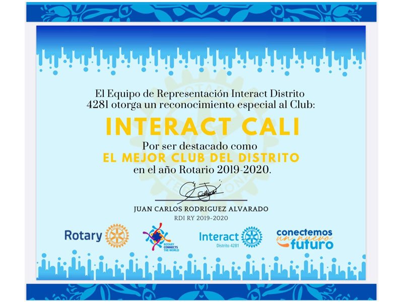 Nuestro club interact Cali fue nombrado como Mejor club del distrito