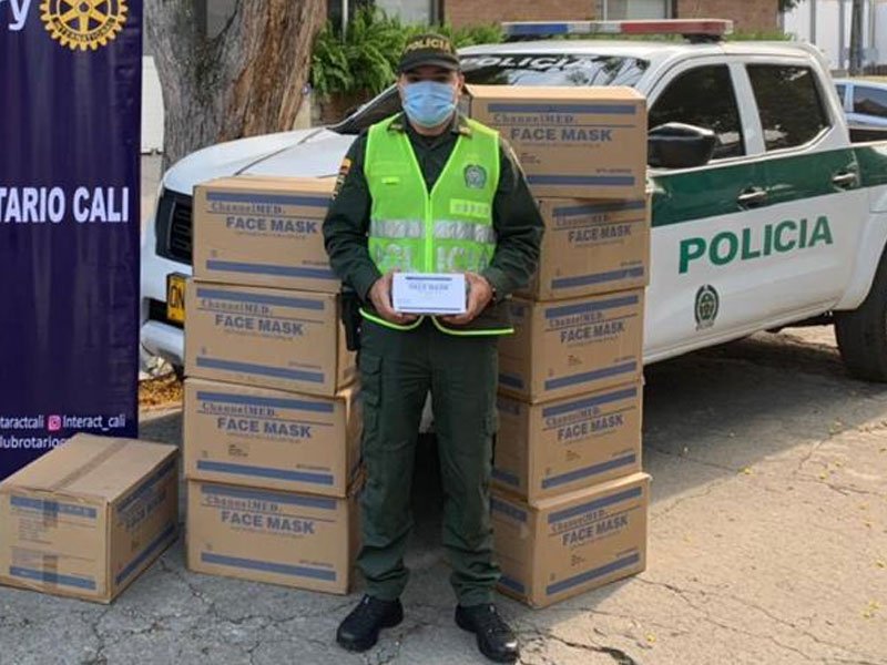 Entrega de tapa bocas y termómetros a la Policía nacional metropolitana de cali: 20.000 tapabocas y 40 termómetros