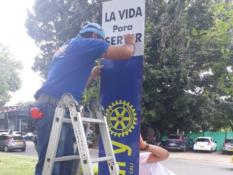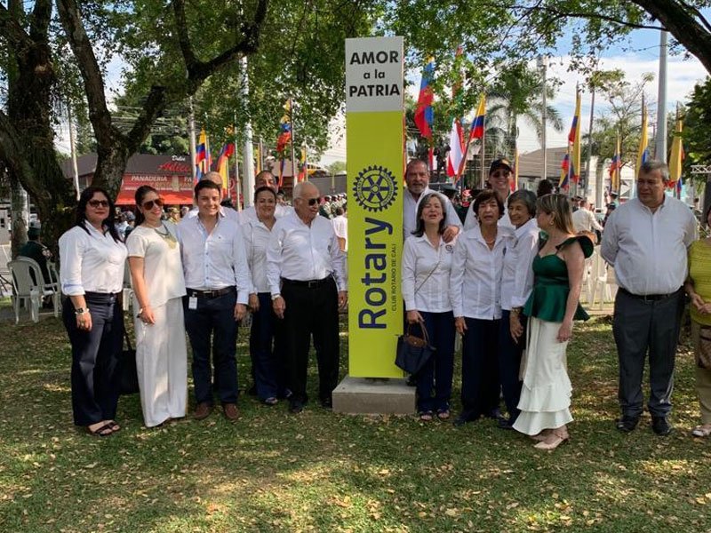 Imagen pública de Rotary en la rotonda de Ciudad Jardín de nuestra Ciudad Cali, donde no solo mostramos nuestra rueda Rotaria, sino que ademas renovamos un espacio público y motivamos el amor patrio. Espacios de acercamiento con las instituciones, trabájamos en coordinación con nuestras Fuerzas Militares y Policía Nacional. La seguridad y bienestar es trabajo de todos.